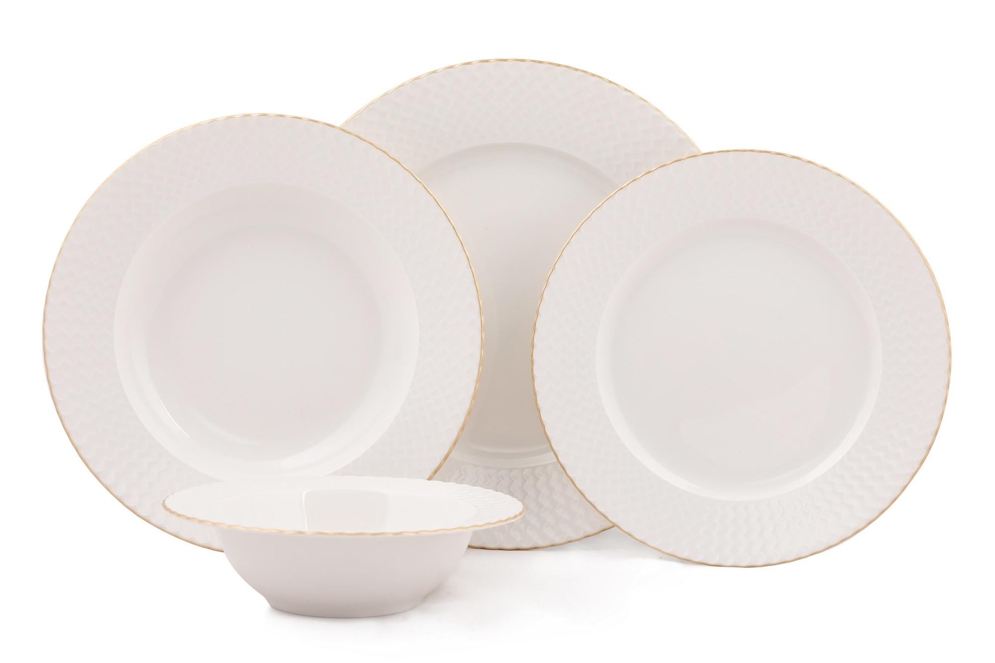 Service de table en porcelaine, Ellis Dinner, Blanc / Or, 24 pièces