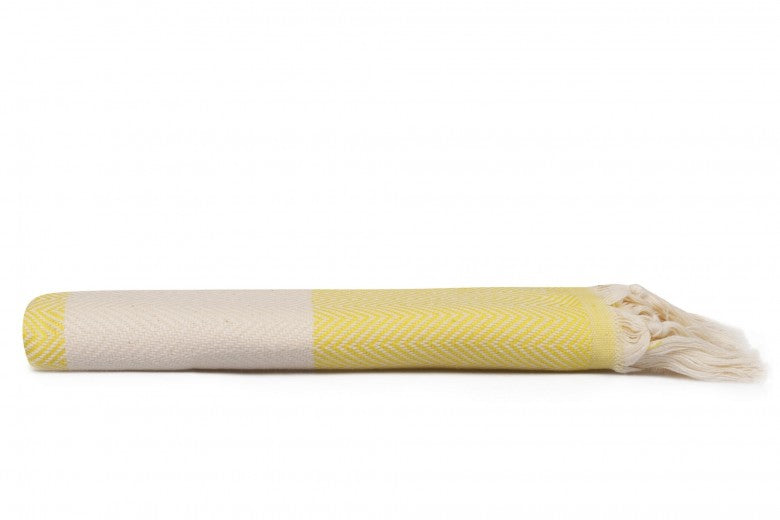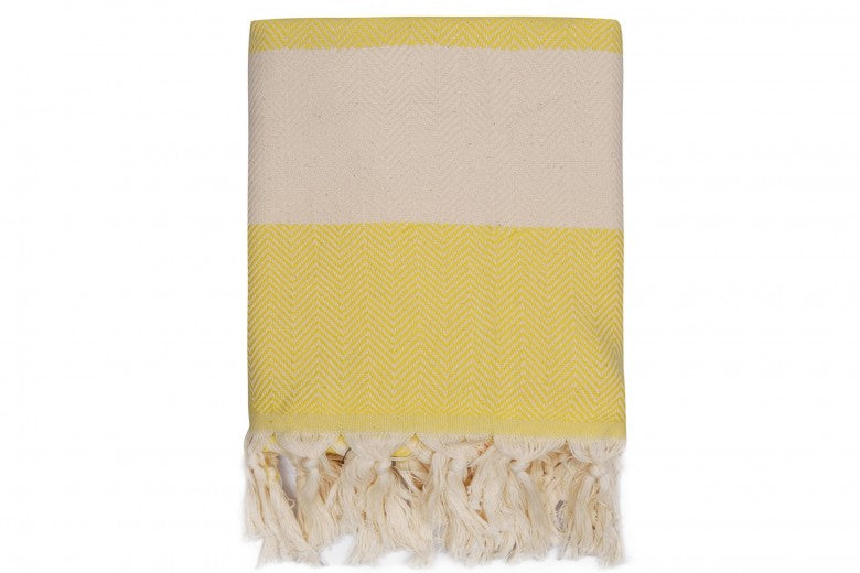 Serviette spa en coton, Jaune Océan / Blanc, 100 x 180 cm