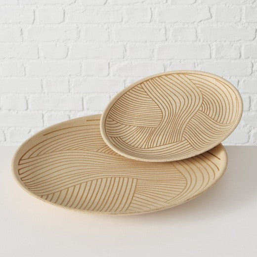 Set de 2 assiettes décoratives Géométrique Naturel, Ø39xH3 cm / Ø28xH2,5 cm