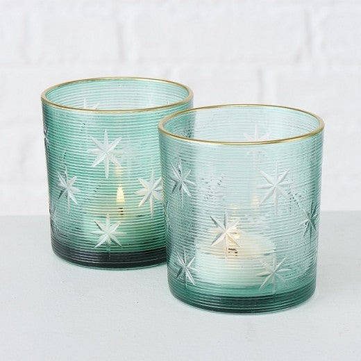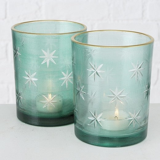 Set de 2 bougeoirs, en verre Salvia Verde, Modèles Assortis, Ø7xH8 cm / Ø10xH12 cm