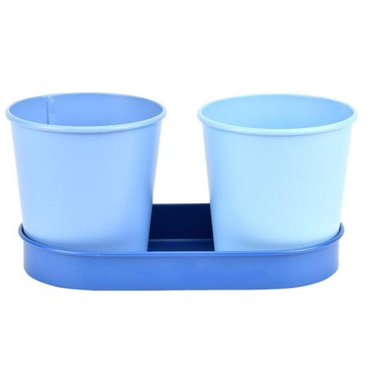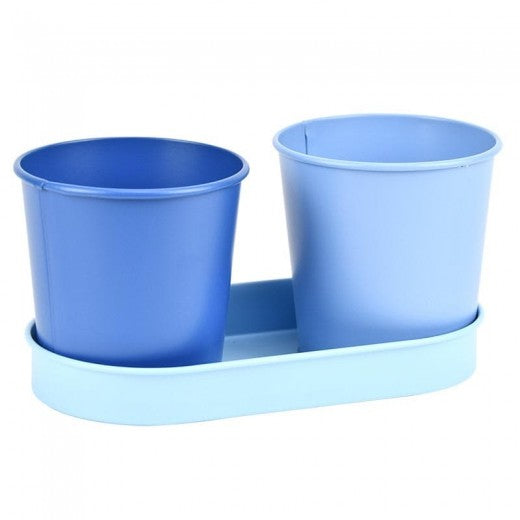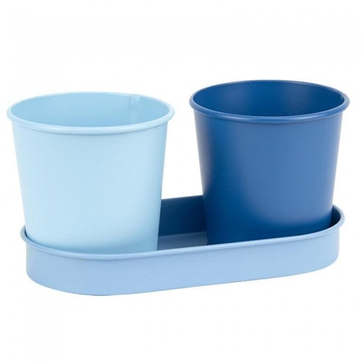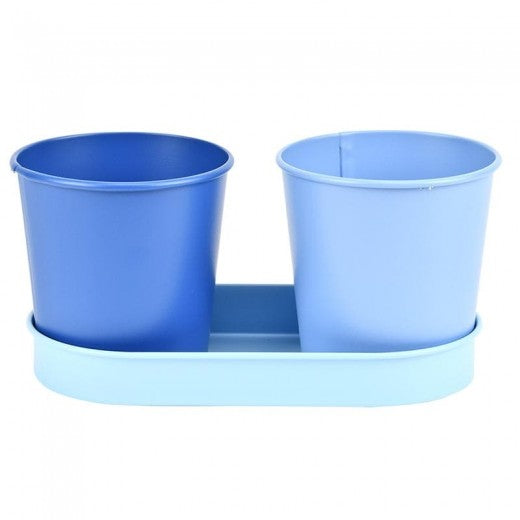 Set de 2 pots avec plateau en métal, Bleu Shades, Modèles Assortis, L18,3xl9,4xH9,1 cm
