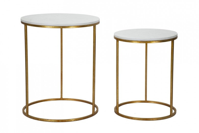 Set de 2 tables basses en métal et résine Simply Marble Blanc / Or, Ø52xH63 / Ø42xH53 cm