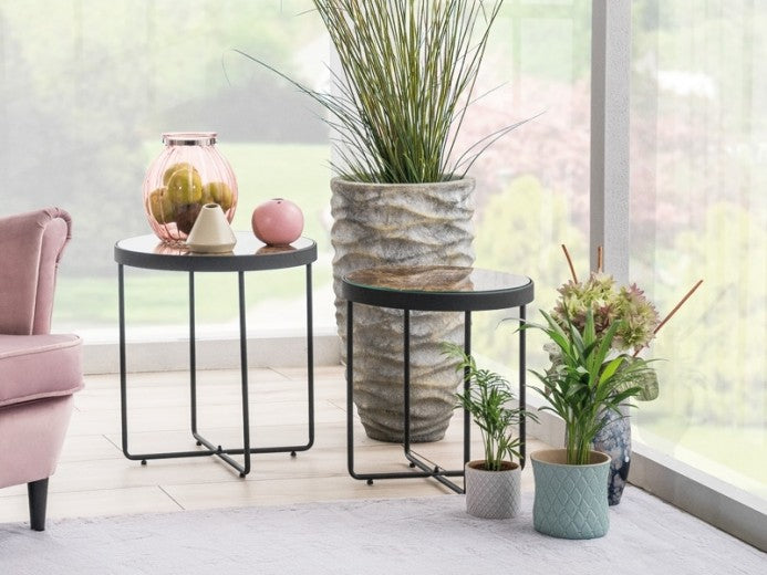 Set de 2 tables basses en verre et métal Manta Marble / Noir, Ø44xH49 cm / Ø40xH43 cm