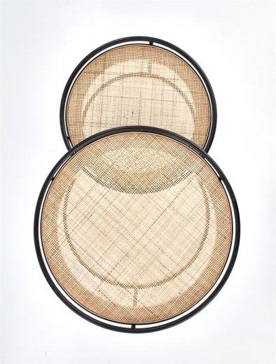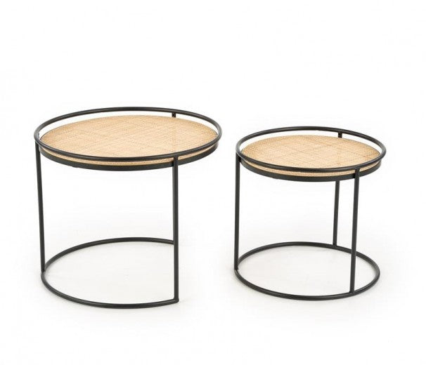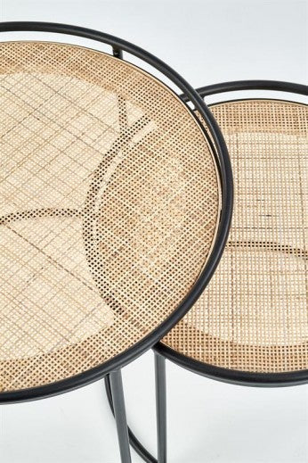 Set de 2 tables basses rotin et métal Manado Naturel / Noir, Ø51xH42 / Ø41xH37 cm