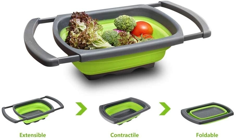 L'ensemble contient 3 passoires pliables en silicone de différentes tailles.