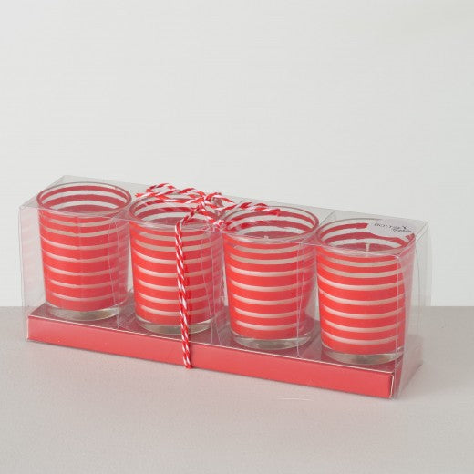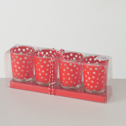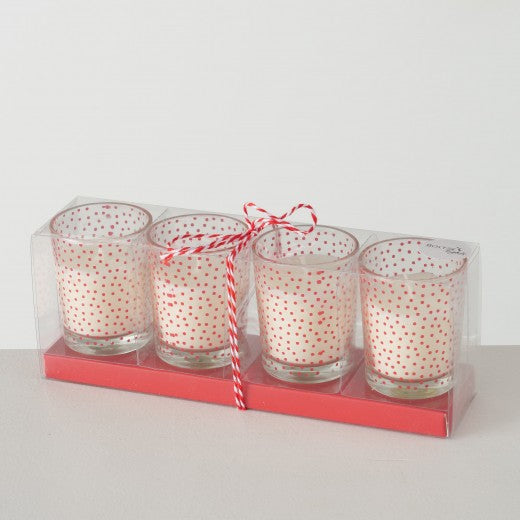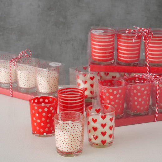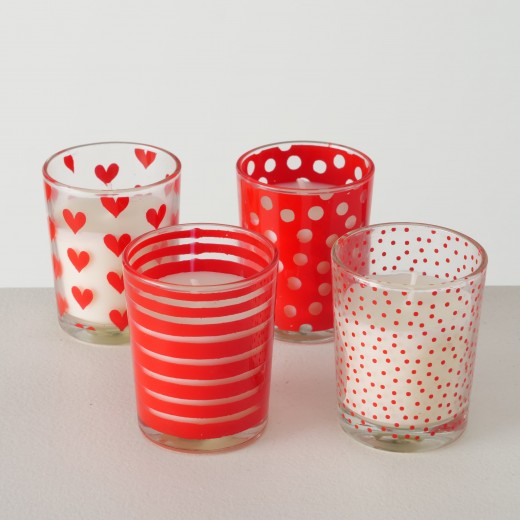 Set de 4 bougies en verre Lola Blanc / Rouge, Modèles Assortis, Ø5xH6 cm