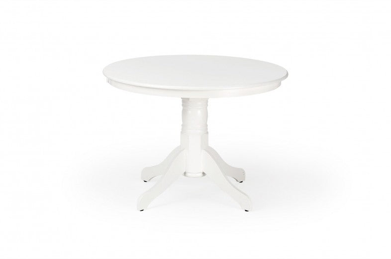 Set de table en MDF et bois Gloster Blanc + 4 chaises en hévéa Barkley Blanc, Ø106xH75 cm