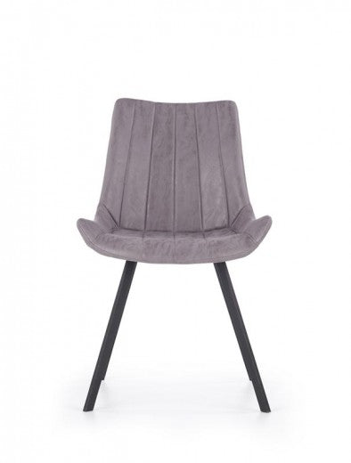 La chaise est recouverte de cuir écologique et a des pieds en métal.