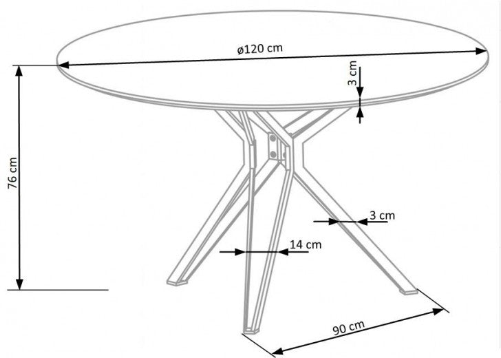 Set de table en MDF et métal Pixel 2 Chêne / Noir + 3 chaises rembourrées avec éco-cuir K279 Gris, Ø120xH76 cm