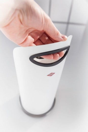 Support en métal avec poignée pour essuie-tout, Porte-papier blanc, Ø15,6xH35,2 cm