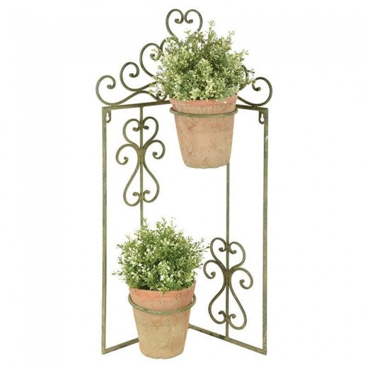 Support mural pour 2 pots, métal, Fleur Vert Antique, L42,3xl14,4xH68,6 cm