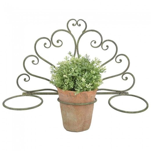 Support mural pour 3 pots, métal, Fleur Vert Antique, L46,8xl15,2xH26,8 cm