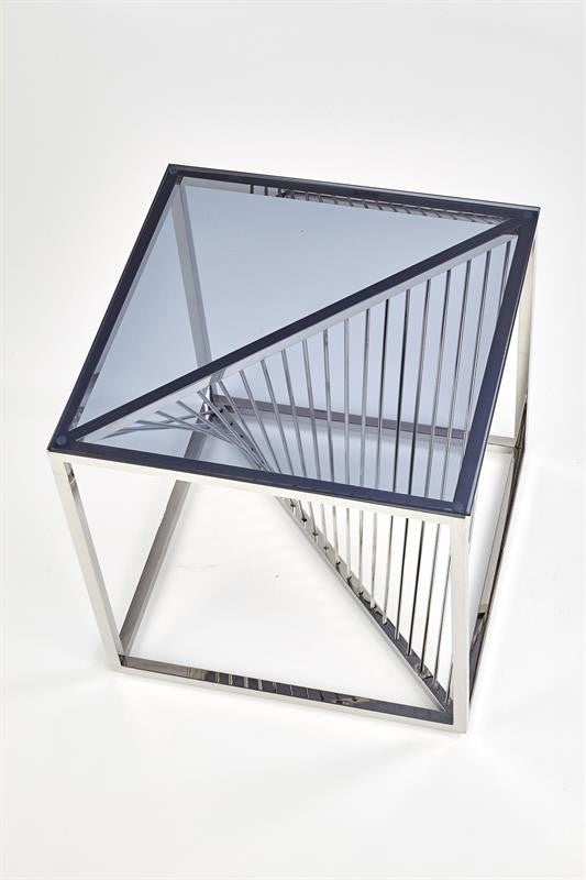 Table basse carrée Infinity en verre et métal chromé, L55xl55xH55 cm
