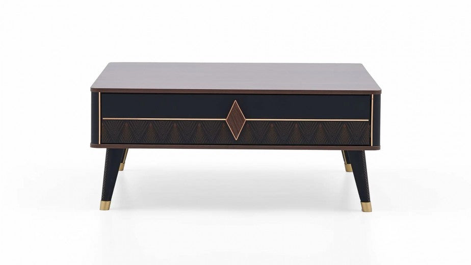 Table basse en bois et bois, avec un tiroir Diamond Walnut, L89xl89xH37 cm