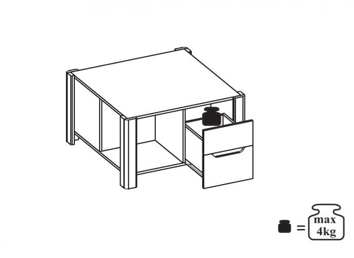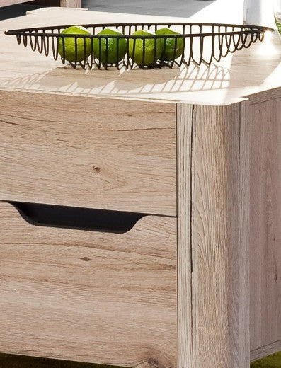 Table basse en châtaignier, avec 2 tiroirs Desjo 41 Chêne San Remo, L80xl80xH46 cm