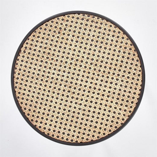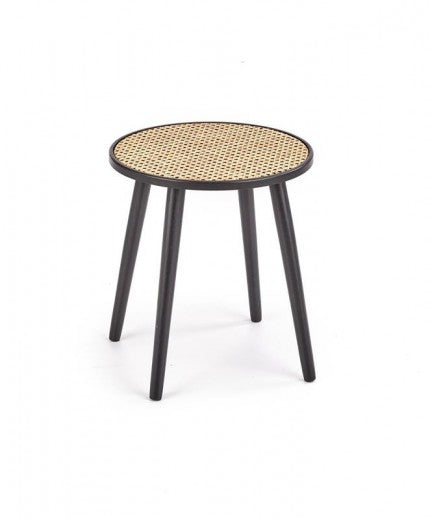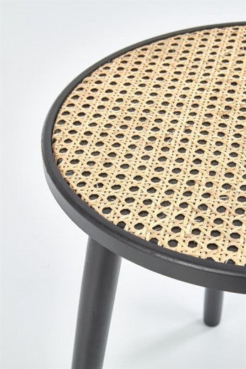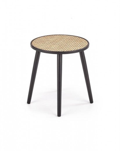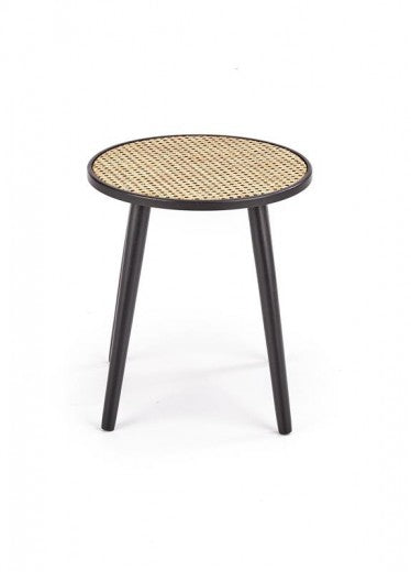 Table basse en MDF, rotin et bois Jakarta Naturel / Noir, Ø39xH44 cm