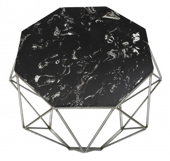 Table basse en métal Diamond Marble Noir, Ø68xH52 cm