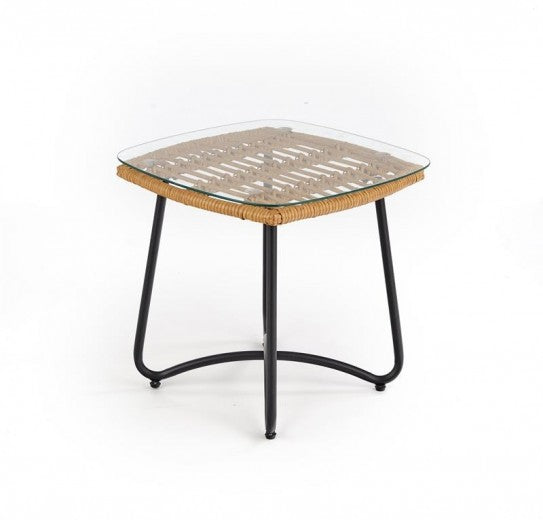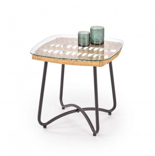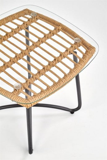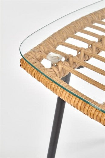 Table basse en rotin, verre et métal Indira Natural, L51xl51xH48 cm