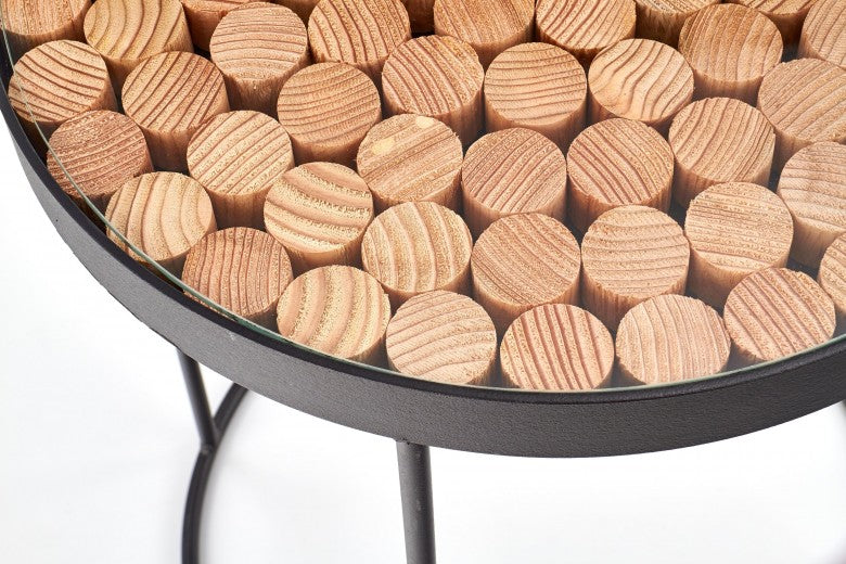 Table basse en verre et métal Naturo 2 Naturel / Noir, Ø47xH61 cm