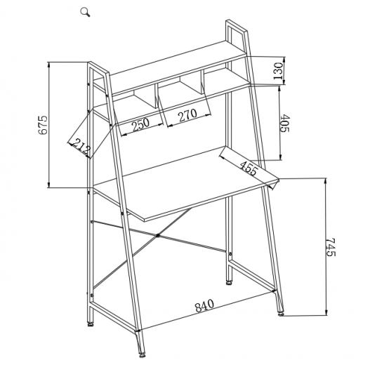 Table de bureau avec étagère, en palettes et métal Narvik B2 Chêne Sonoma / Noir, L84xl46xH142 cm