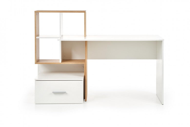 Table de bureau en bois, avec bibliothèque et tiroir Chêne Grosso / Blanc, L149xl50xH105 cm