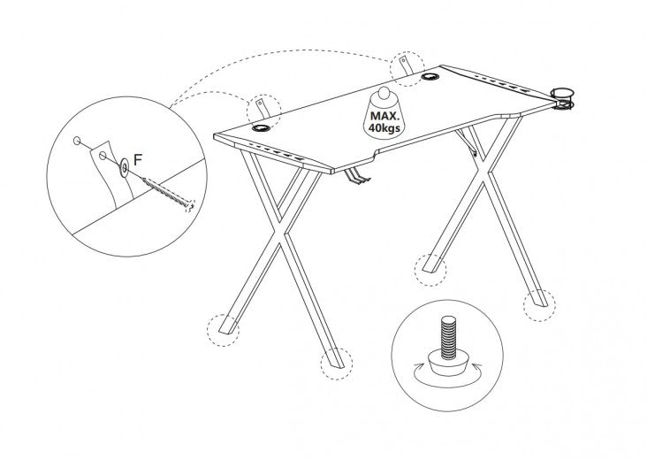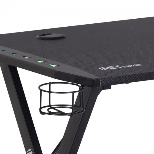 Le bureau de jeu Elijah est élégant et durable, avec toute la surface du tapis de souris. Il est muni de pieds stables et possède de nombreux accessoires utiles pour les amateurs de jeux : support casque, porte-gobelet.