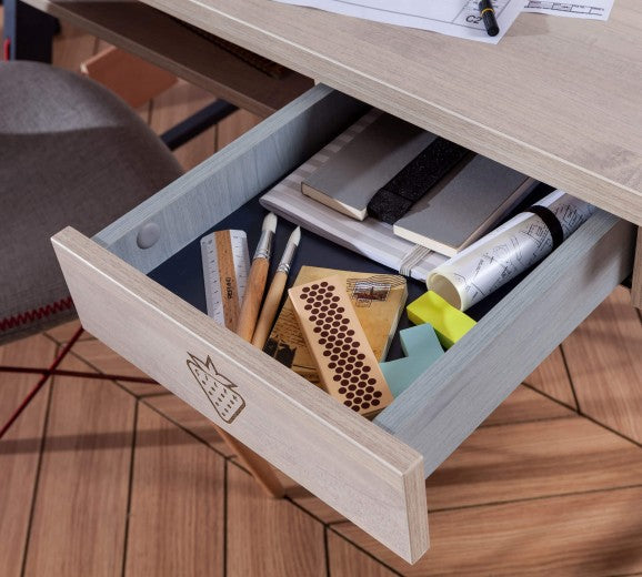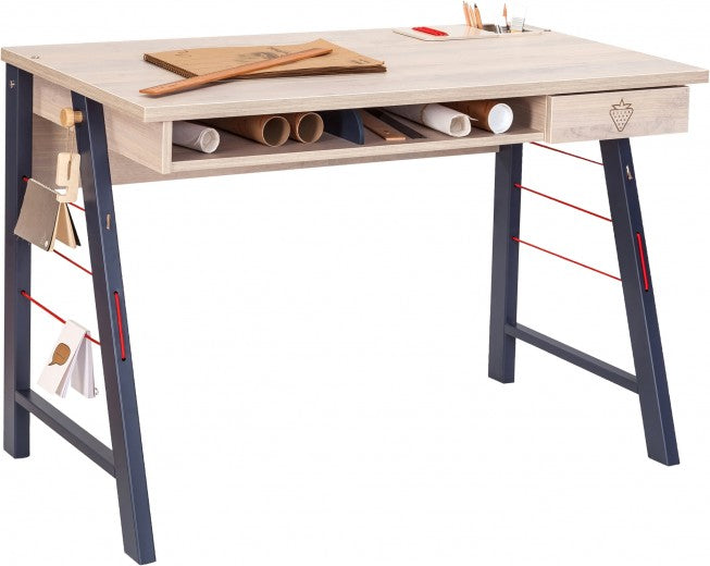 Table de bureau pâle et métal pour jeunes, garçons 12-24 ans, Trio Natur / Blue, allie harmonieusement esthétique, fonctionnalité et durabilité.