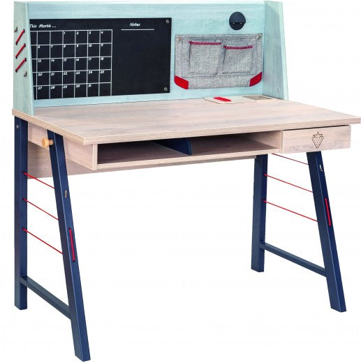 Table de bureau palette et métal pour jeunes, garçons 12-24 ans, Trio Natur / Bleu, l114xA64xH76 cm