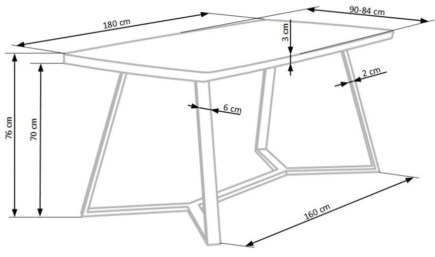 Table en MDF et métal Caruzzo Noyer / Graphite, L180xl90xH76 cm