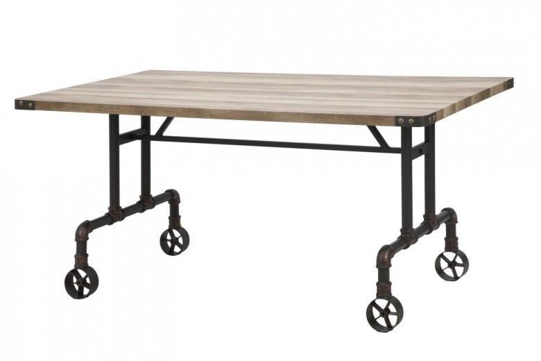 Table en MDF et métal Manhattan Naturel / Noir, L160xl91,5xH76 cm