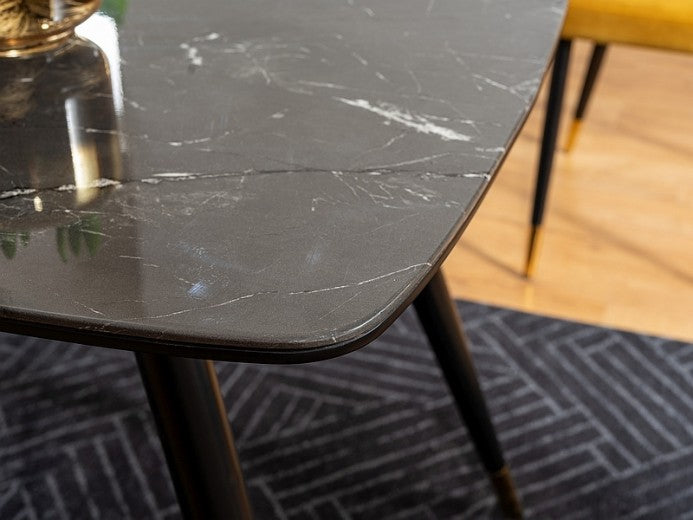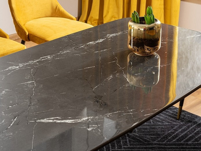 Table en MDF, verre et métal, Cyril I Noir/Or, L140xl80xH76 cm