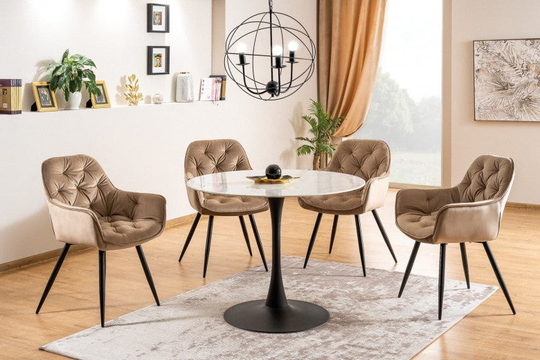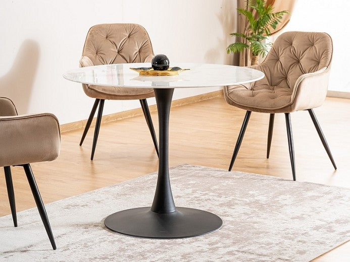 Table en verre et métal, Ontario Noir / Blanc, Ø100xH76 cm
