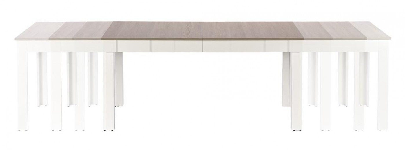 Table extensible en aggloméré et MDF Blanc d'égout / Chêne Sonoma, L160-300xl90xH76 cm