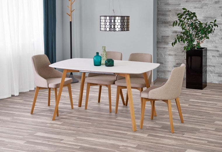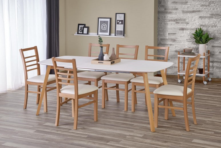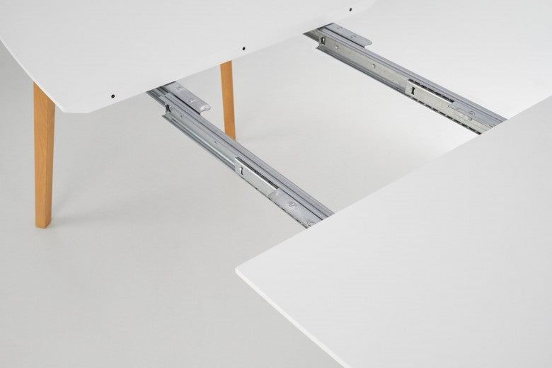 Table extensible en MDF et bois de hêtre Kajetan Blanc / Chêne Miel, L135-185xl82xH76 cm