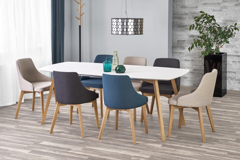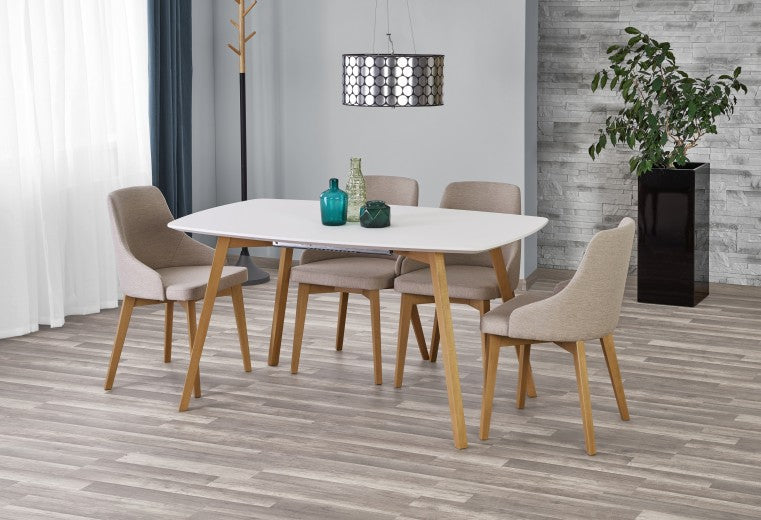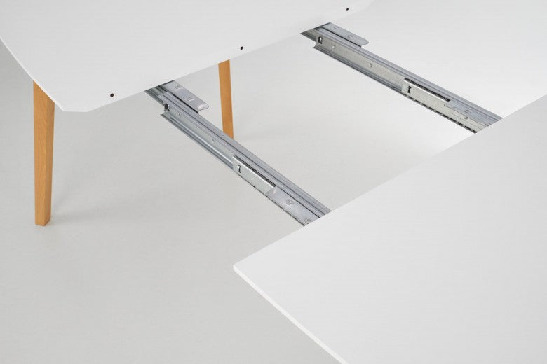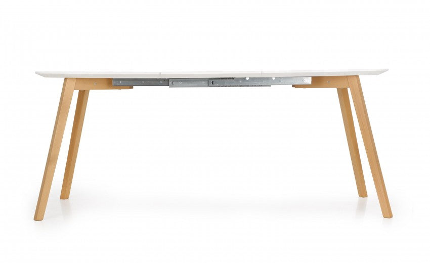 Table extensible en MDF et bois de hêtre Kajetan Blanc / Chêne Miel, L150-200xl85xH76 cm