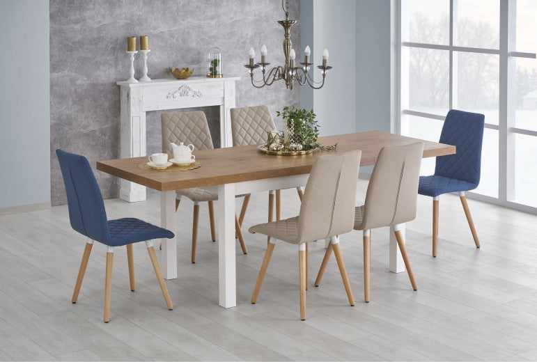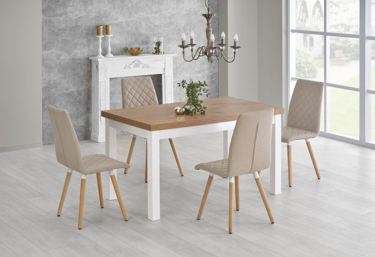 Table extensible en MDF et bois de hêtre Tiago Lancelot Chêne / Blanc, L140-220xl80xH76 cm