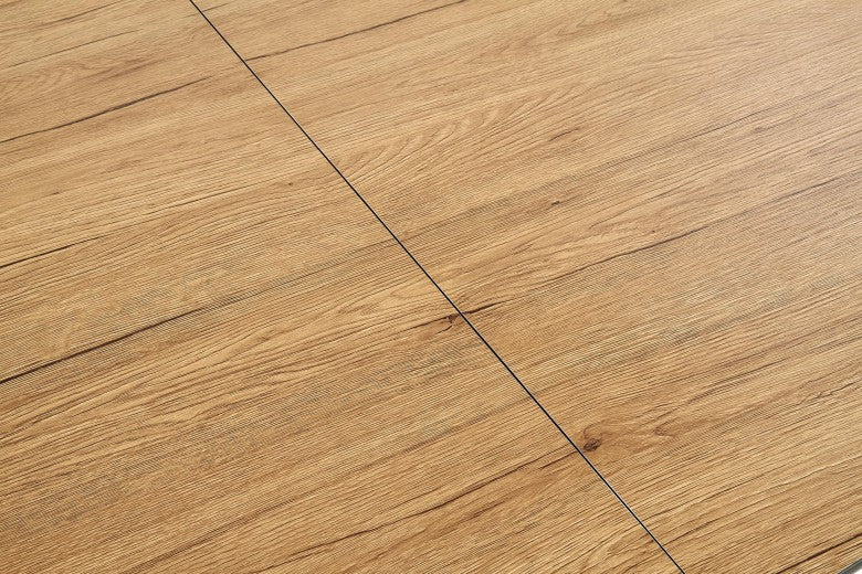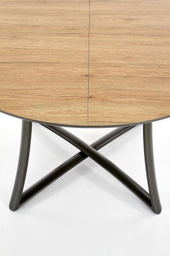 Table extensible en MDF et métal Moretti Chêne Doré / Noir, Ø118-148xH76 cm