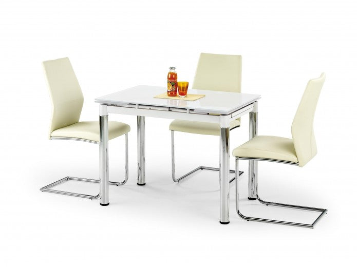 Table extensible en verre et métal Logan 2 Blanc / Chrome, L96-142xl70xH75 cm