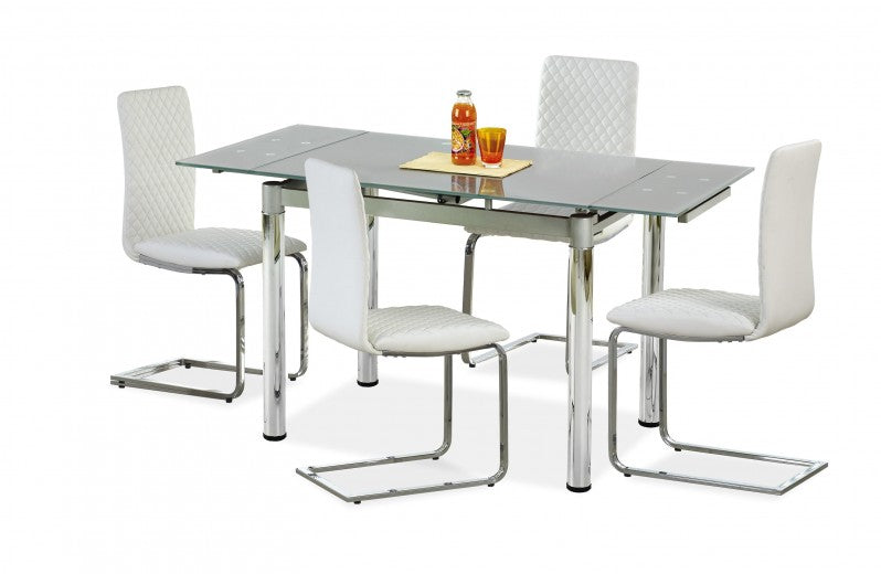 Table extensible en verre et métal Logan 2 Gris / Chrome, L96-142xl70xH75 cm