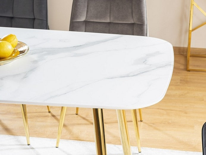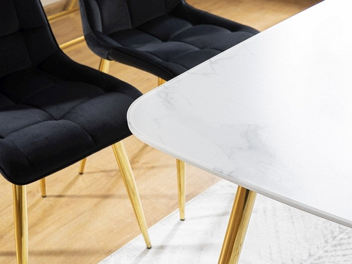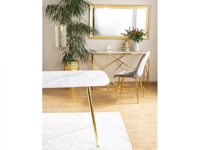 Table en MDF, verre et métal Ceres Blanc / Or, L140xl80xH75 cm