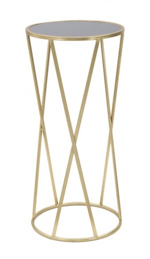 Table support téléphone en verre et métal Glam Simple Or / Noir, Ø35xH75 cm