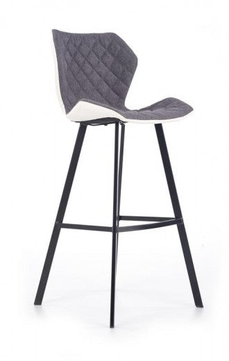 Tabouret de bar rembourré en tissu écologique et cuir, avec pieds en métal H-83 Blanc / Gris, l49xA53xH113 cm