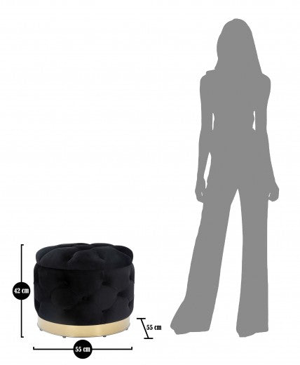 Tabouret rembourré avec tissu et espace de rangement Rich Velvet Noir, Ø55xH42 cm