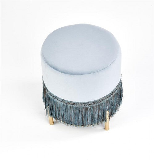 Tabouret rembourré avec tissu et pieds en métal Cosby Bleu clair / Or, Ø39xH39 cm