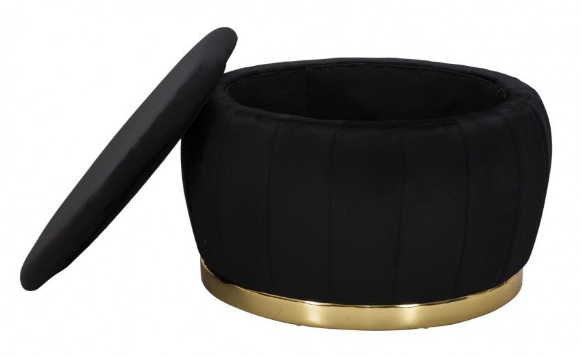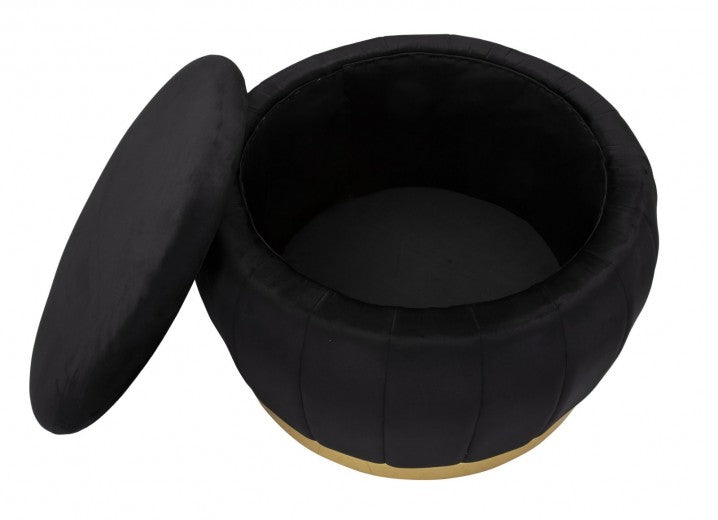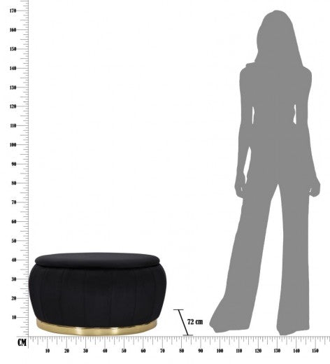 Tabouret rembourré en tissu, avec espace de rangement Paris Big Noir / Doré, Ø72xH43 cm