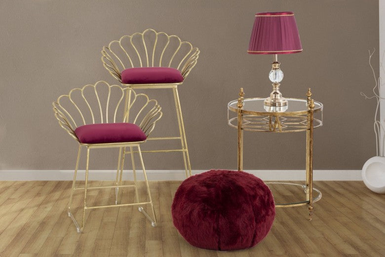 Tabouret rembourré en tissu Peluche Bordeaux, Ø50xH30 cm