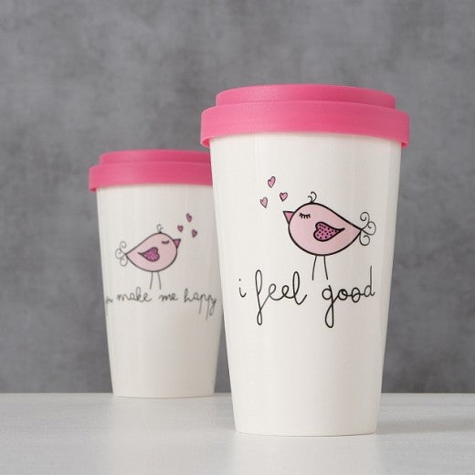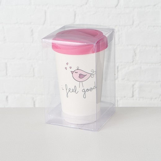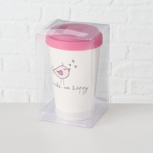 Tasse avec couvercle, en porcelaine Twieti To Go Blanche / Rose, Modèles Assortis, 350 ml