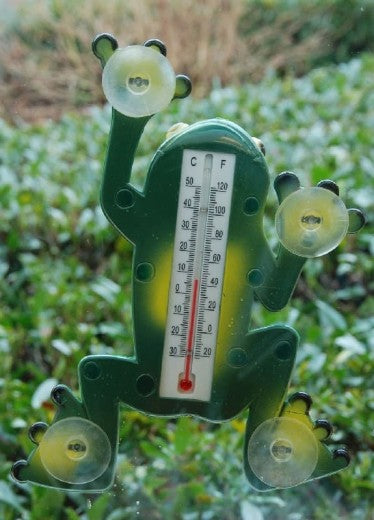 Thermomètre d'extérieur à ventouses, plastique, Grenouille verte, L17,6xl3,5xH23,8 cm