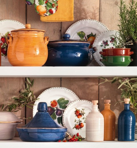 Vase avec couvercle en céramique, Le Primizie Jaune / Brique, Ø16,5 cm