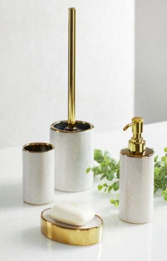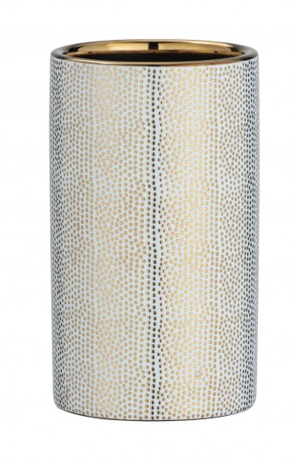 Porte-brosse à dents pour la brosse à dents et la pâte dentifrice, brosse à dents, en céramique Nuria Doré / Blanc, Ø6,5xH10,7 cm